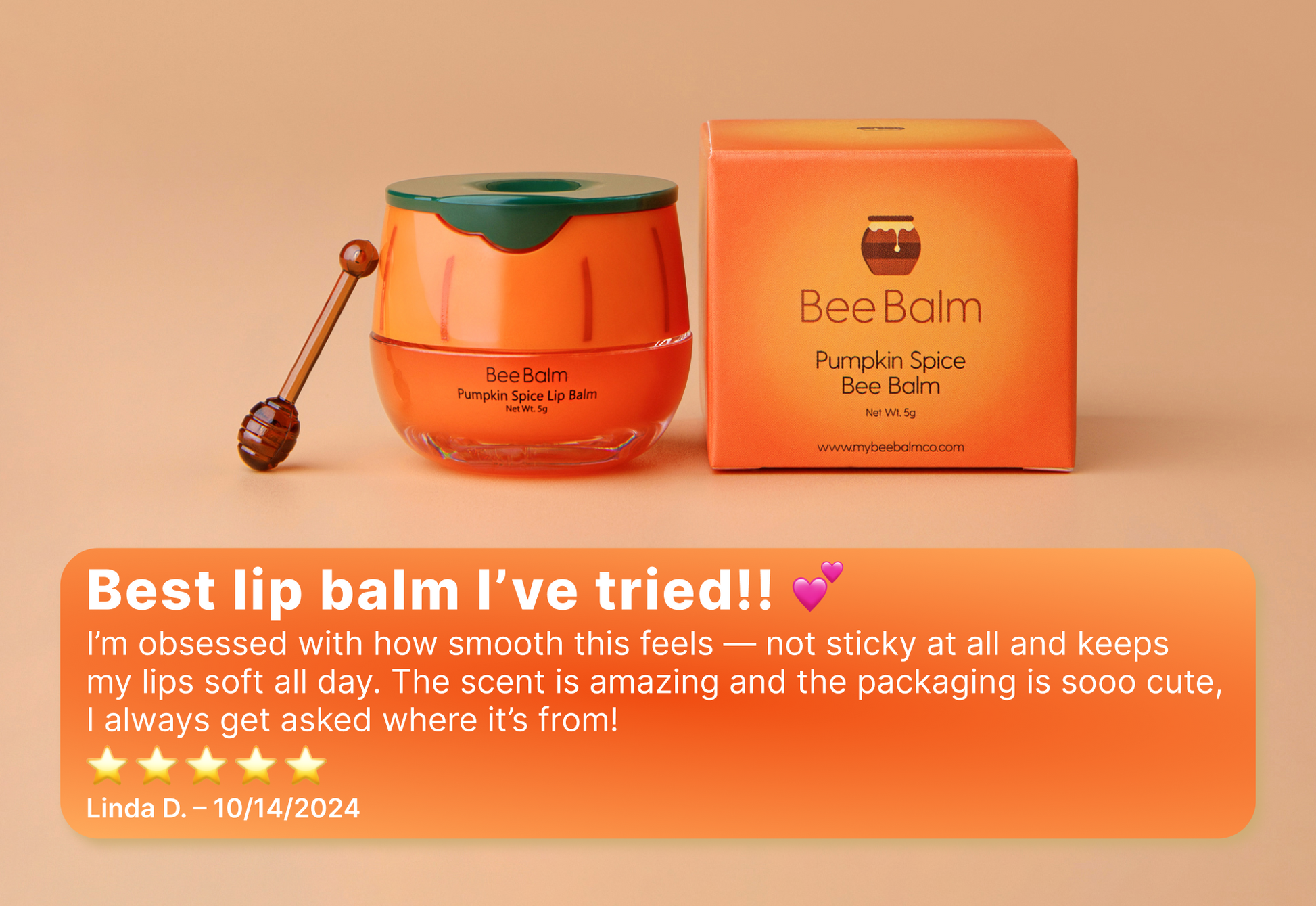 Get cozy with our new Pumpkin Spice Bee Balm! Enjoy a warm, pumpkin spice scent as our lip balm moisturizes and softens your lips. Don't miss out on this fall essential!